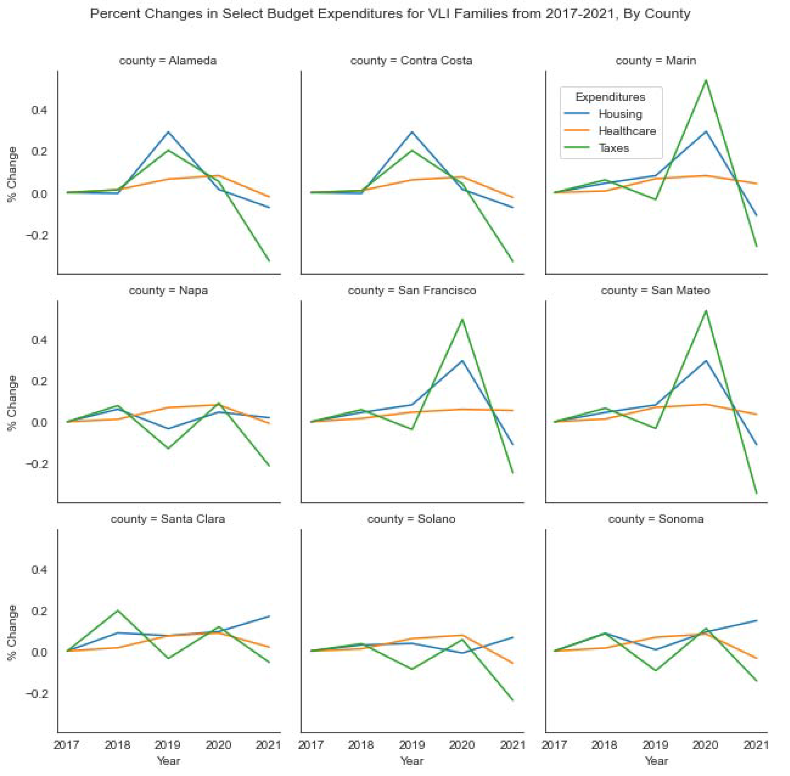 Figure 1. Percent Changes in Budget Expenditures for Bay Area VLI Families from 2017-2021, By County