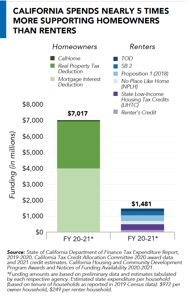 • California spends nearly 5 times more supporting homeowners than renters.
