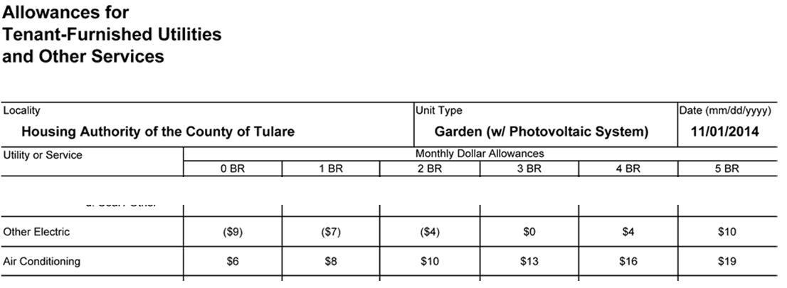 [ii] Utility Allowance Update, Section 8 Photovoltaic, Tulare County Housing Authority. July 2014.